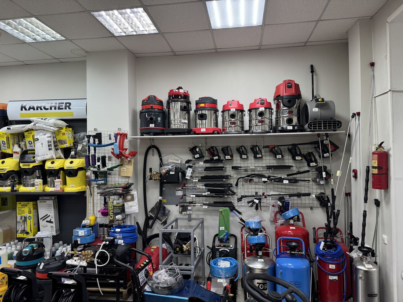 Оборудование – аппараты высокого давления, пеногенераторы, парогенераторы, пылесосы, поломоечные машины, запасные части, химия для уборки и автомобиля, снегоуборочные машины.