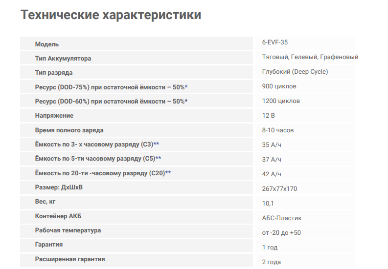 Аккумуляторная батарея Chilwee 6-EVF-35 "BG" (12В-37А\ч С5) 267х77х170 д.ш.в.