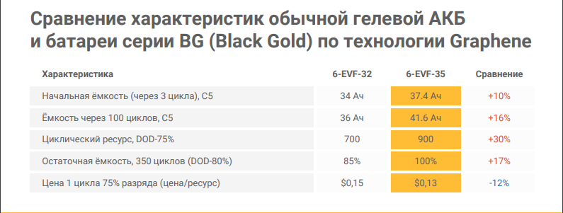 Тяговые графеновые аккумуляторы CHILWEE «BLACK GOLD» (BG) превзошли все аналоги тяговых свинцово-кислотных батарей, предназначенных для легких транспортных средств, как по достижению большей мощности, так и по увеличению предельной дальности поездки на транспортных средствах без подзарядки, и имеют чрезвычайно длительный срок службы.