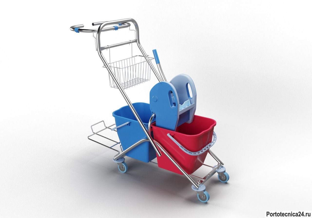 Двухведерная уборочная тележка предназначена для удобной работы в помещениях малой и средней площади. Комплектуется ведром, отжимом, держателем мусорного мешка и металлической корзинкой.