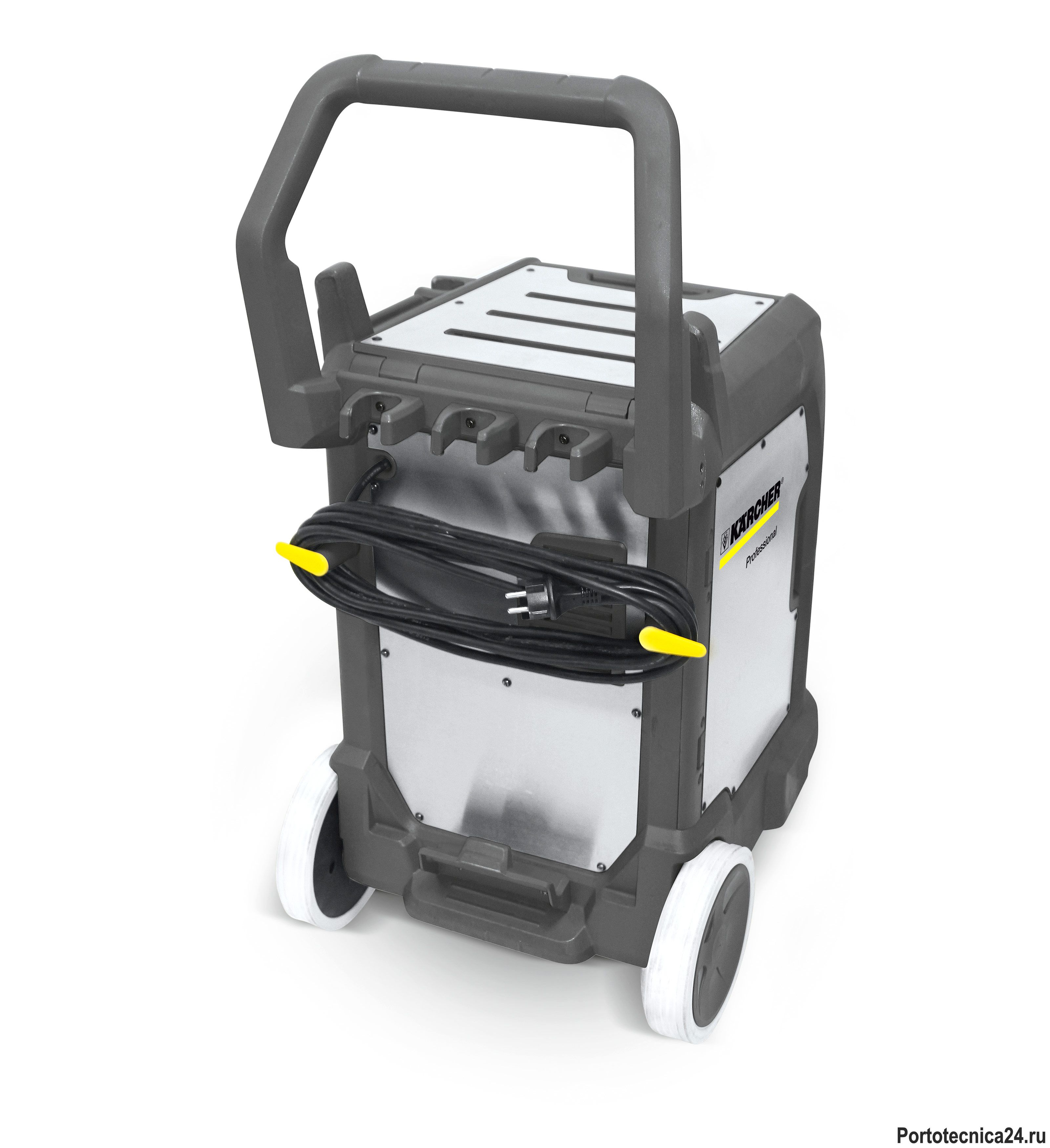 Шланг, удлинительные трубки и насадка для пола фиксируются на корпусе аппарата для его удобной и безопасной доставки к месту применения. Кабель находится с задней стороны аппарата, что исключает опасность споткнуться об него. Профессиональный паропылесос Karcher SGV 8/5 идеален для гигиенической уборки в больницах, на пищевых предприятиях, в столовых, ресторанах, местах отдыха и т.д. В стандартную комплектацию входит: