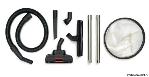 Основа из высокопрочного пластика, металлическая ручка и маневренные колеса обеспечивают пылеводососу устойчивость и удобство в транспортировке. Дополнительные аксессуары обеспечивают тщательную уборку и чистку труднодоступных зон.