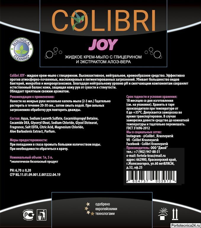 Colibri JOY, 1 литр, с дозатором