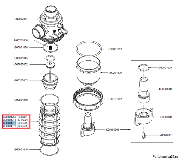 Фильтрующий элемент 50 меш, син. (замена K00100030)