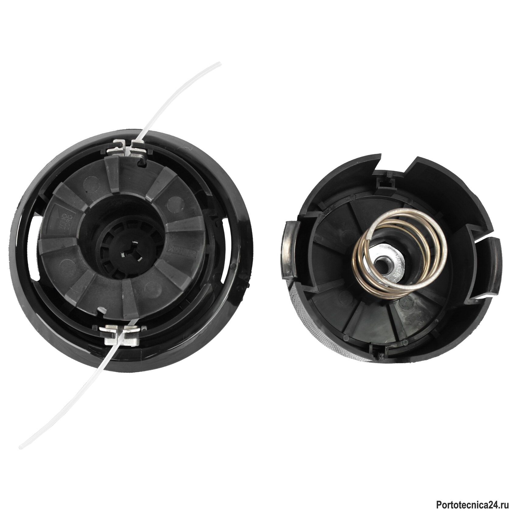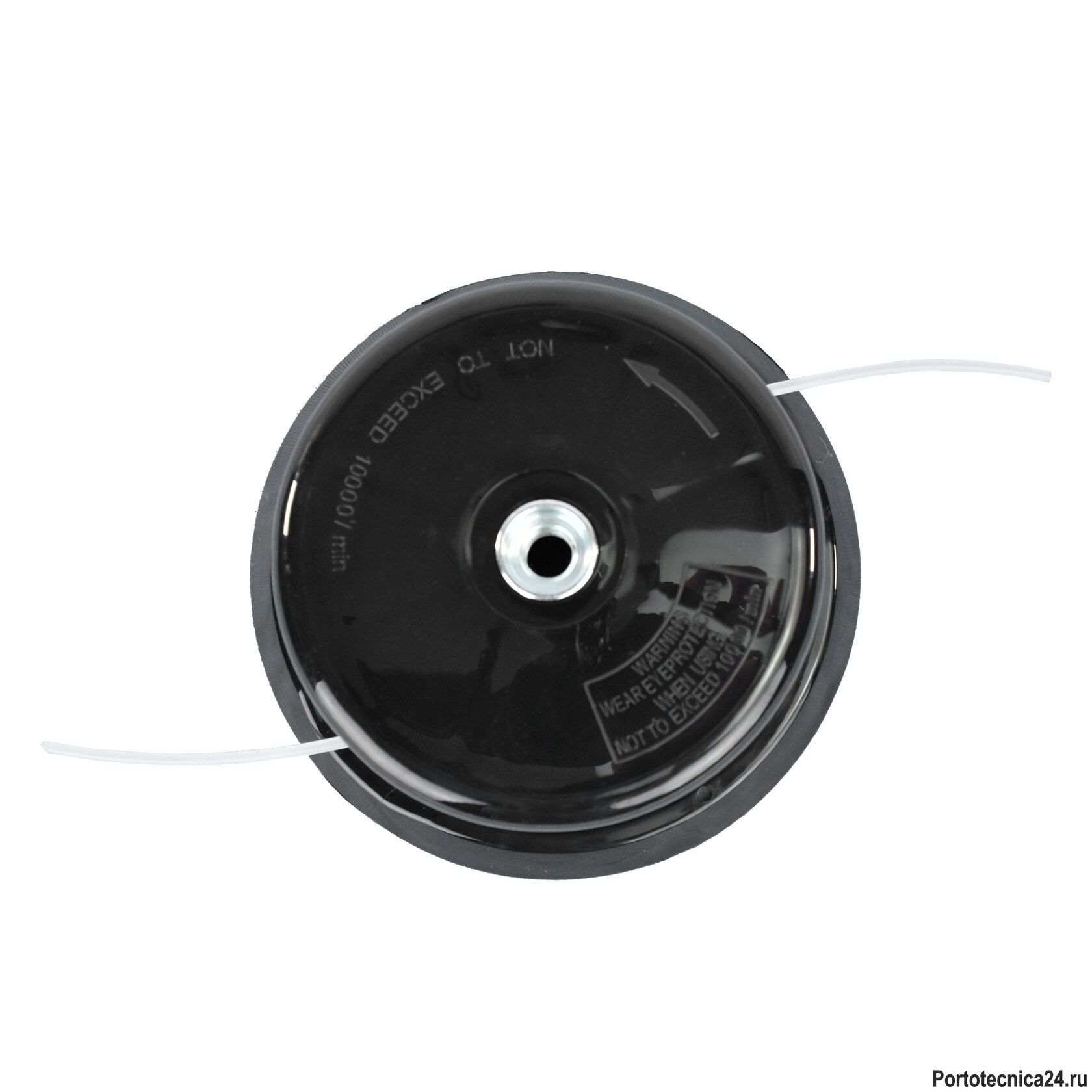 2 сменных насадки входят в комплект (триммерная головка с леской диаметром 2,5 мм и 3-х лопастной металлический нож толщиной 2 мм);