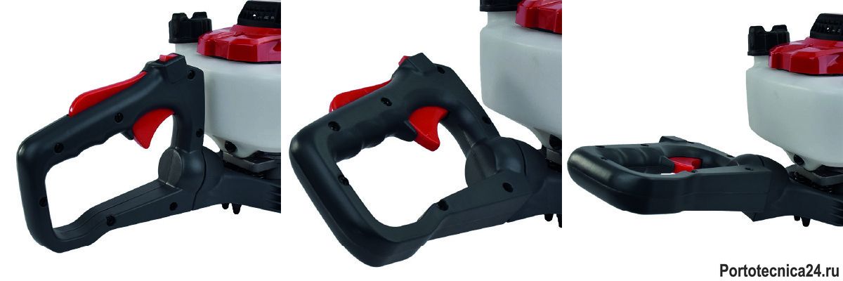Вращающаяся на 180 градусов рукоятка (с 5-тью промежуточными положениями регулировки: каждые 45 градусов).