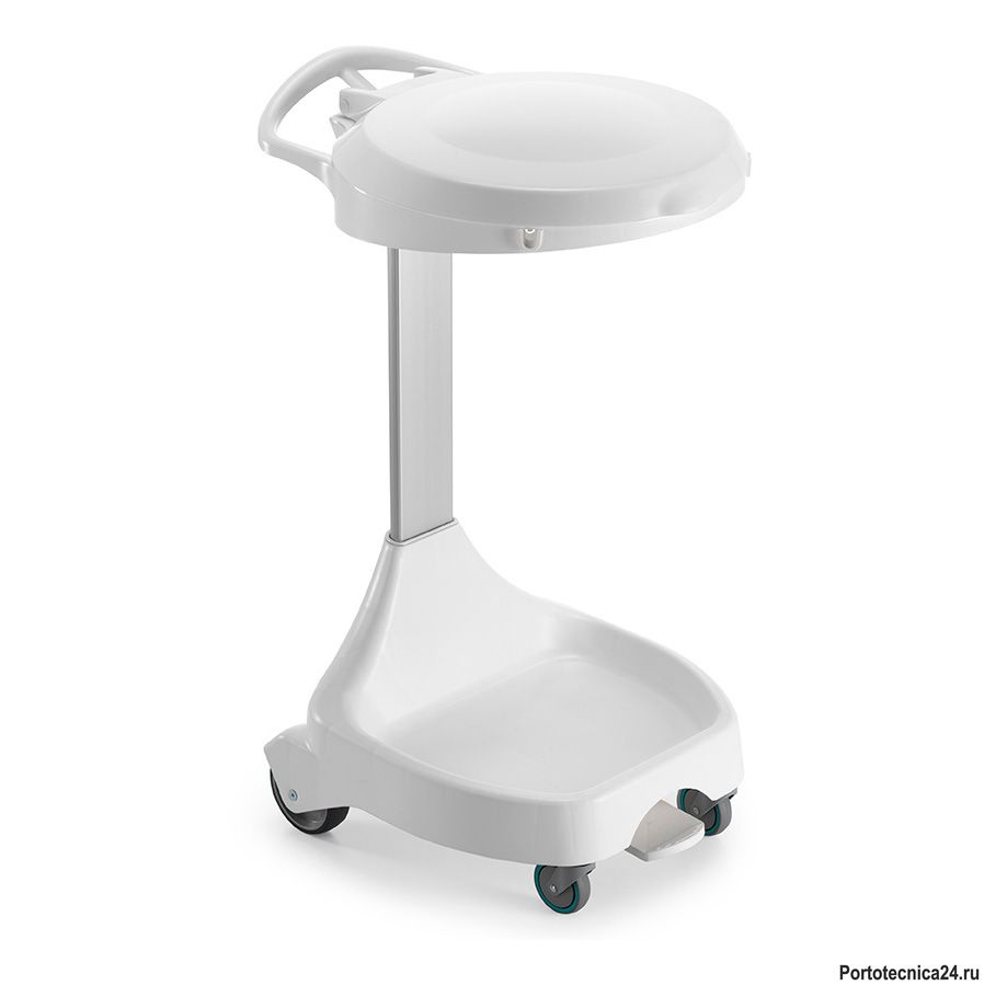 Пластиковый держатель мусорных мешков DELTAС с широким кольцом, округлыми краями и гладкой поверхностью покрытия укомплектована двумя колесами ? 125 мм и двумя колесами ? 80 мм, педалью и крышкой. Широко применяется в бытовой и производственной сферах: гостиничном бизнесе, медицинских учреждениях, ресторанном деле и других отраслях.